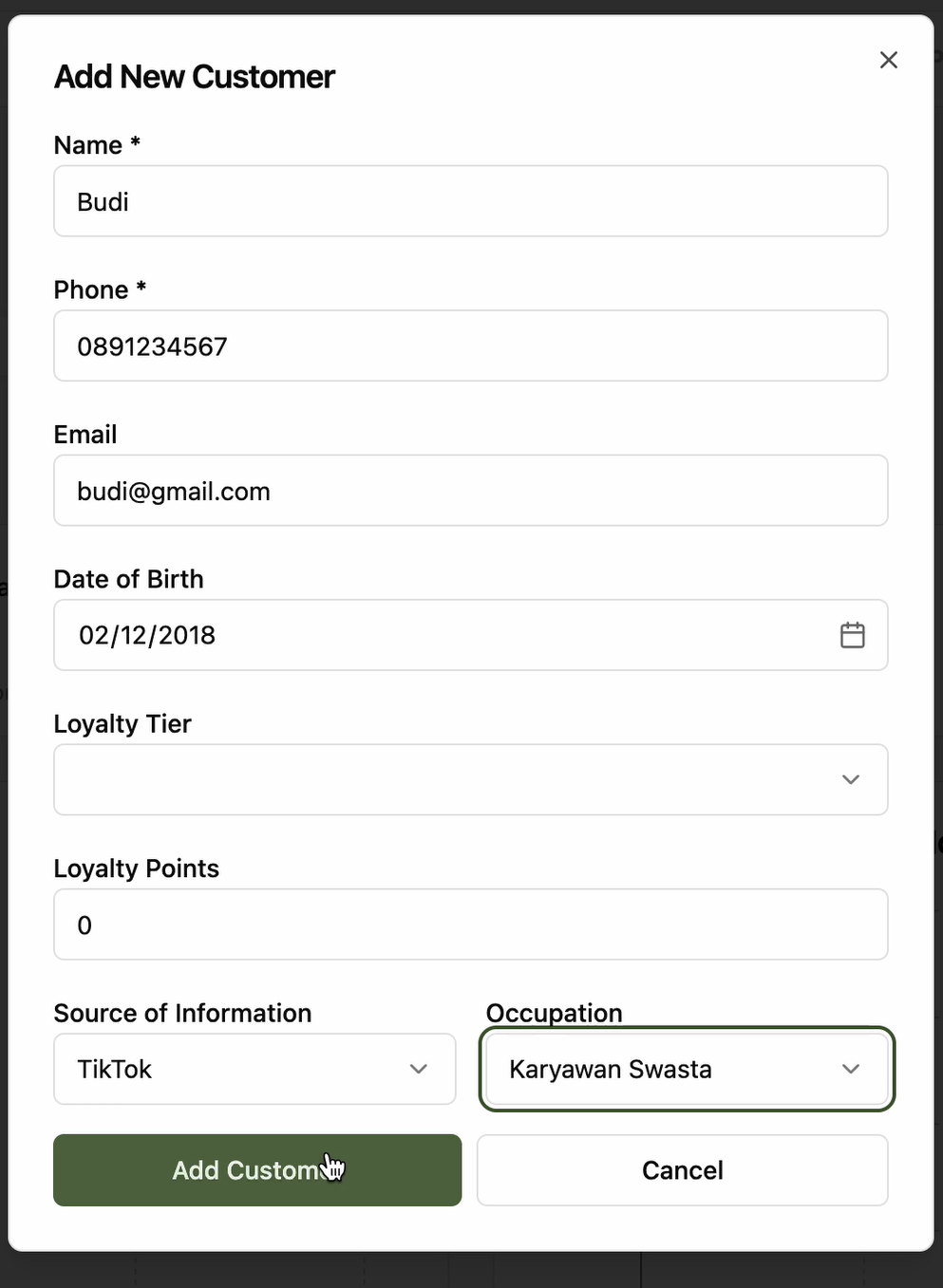 Klik Add Customer untuk menyimpan.