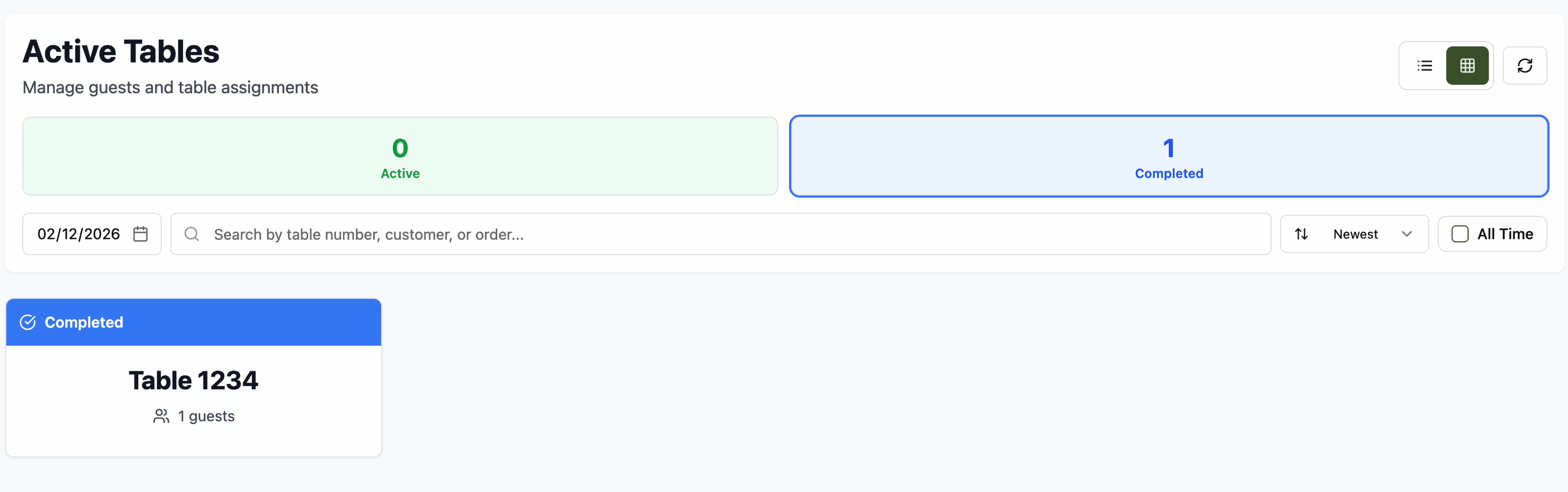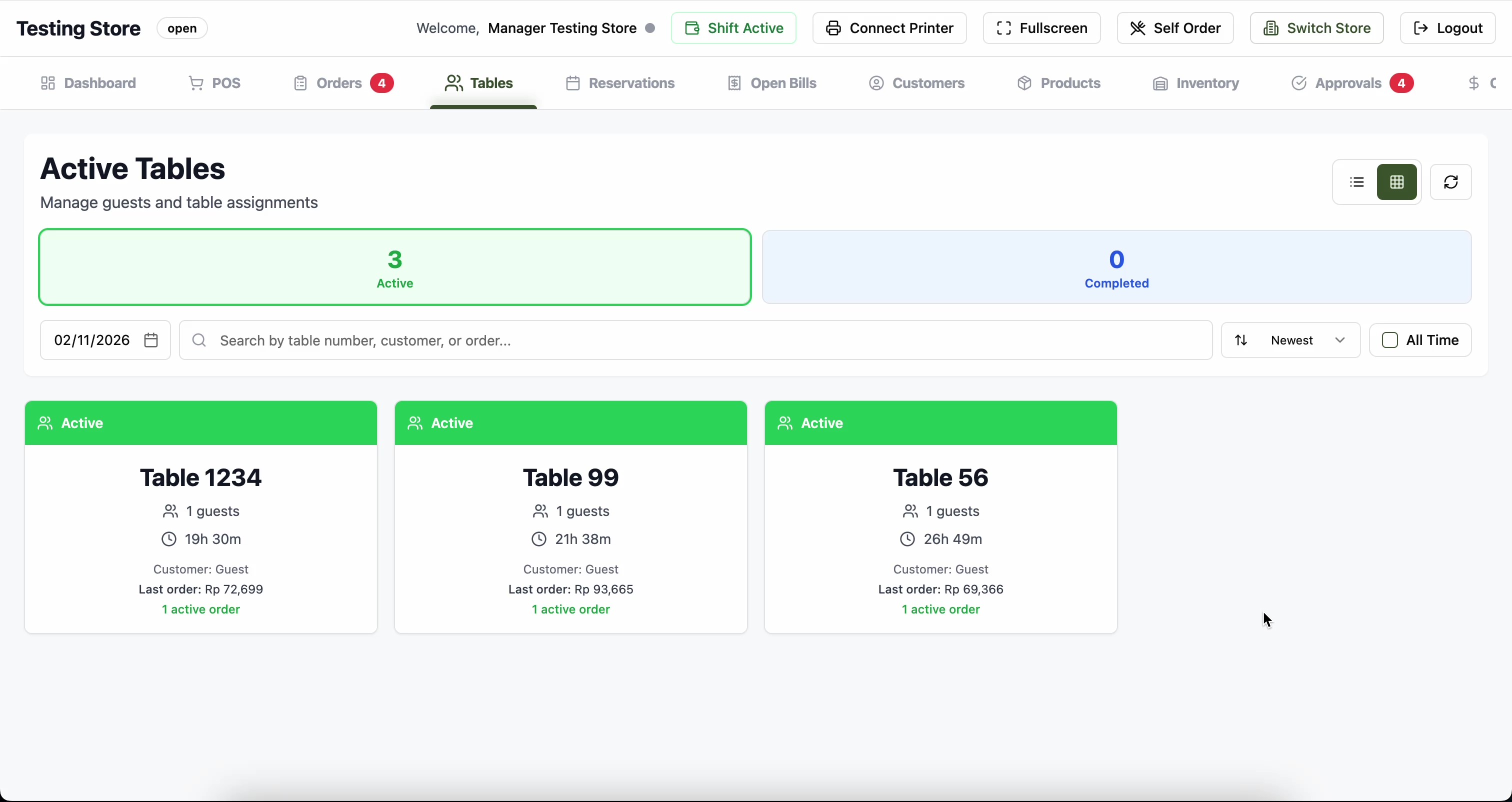 Fitur Tables adalah pusat kontrol operasional untuk pelanggan yang makan di tempat.