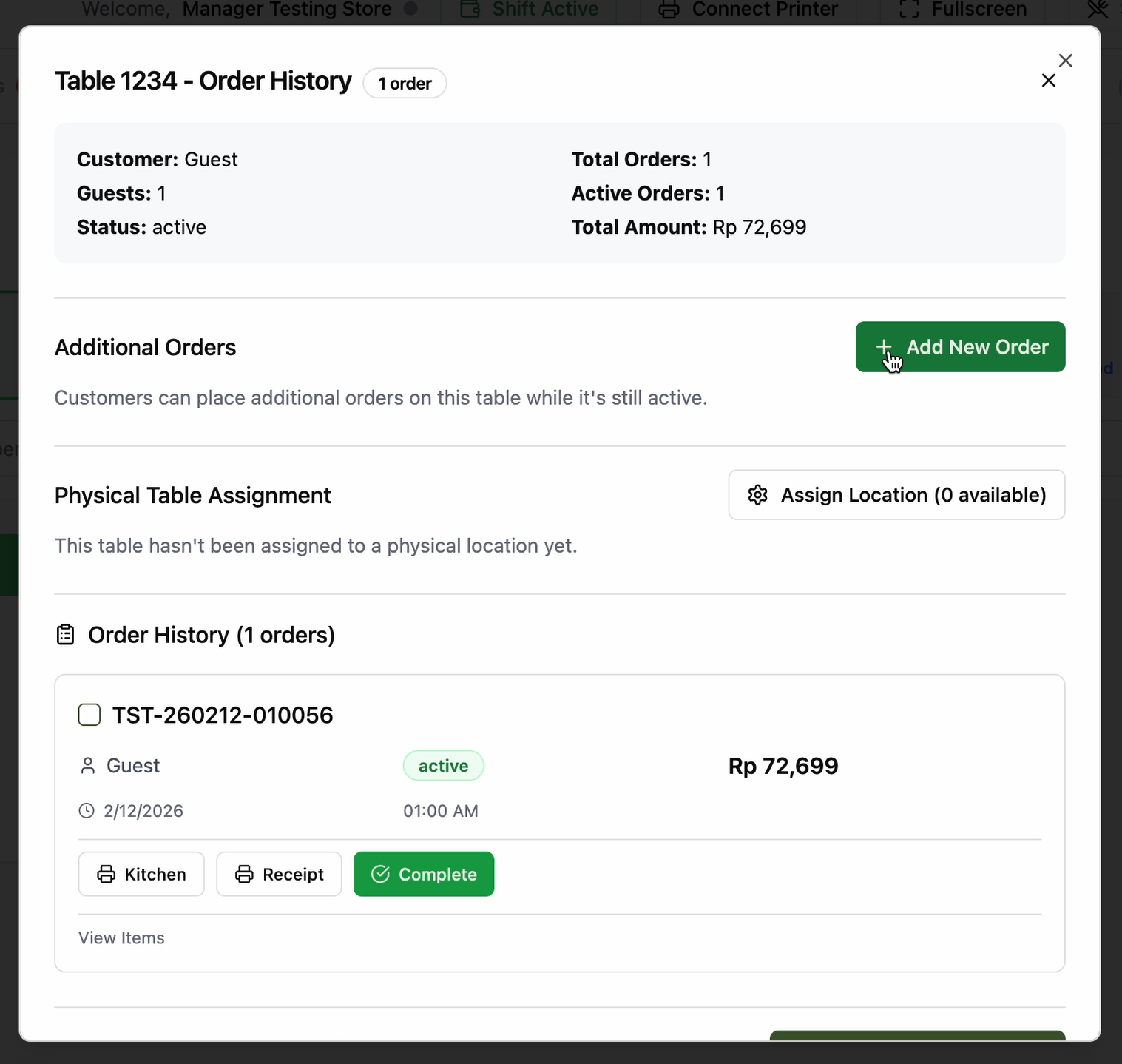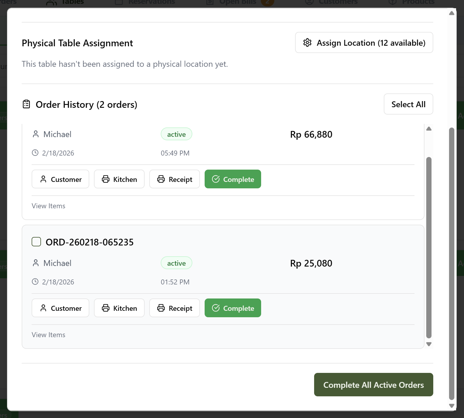 ![[PLACEHOLDER] Bagian Order History di detail meja dengan tombol Complete dan Complete All Active Orders](https://vcjwsczkvhreuekayghg.supabase.co/storage/v1/object/public/Dokumentasi/pos/guidance-manajemen-meja-step-03.png)