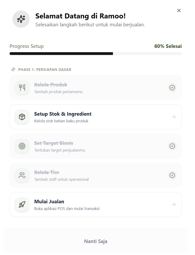 Panduan ini akan membantu kamu menyiapkan toko dari awal sampai siap mencatat transaksi pertama.