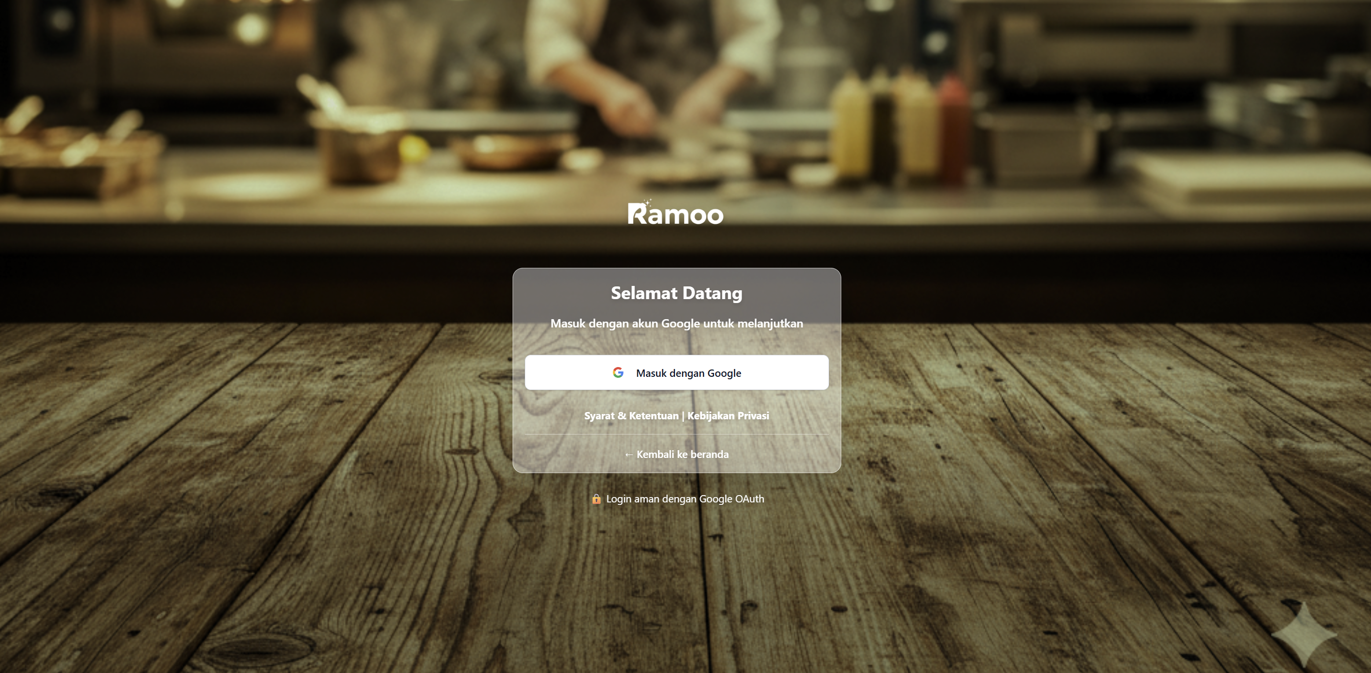 Buka https://www.ramoo.id/login lalu klik Masuk dengan Google.