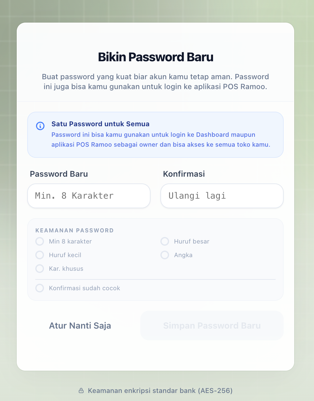 Password ini digunakan untuk login ke aplikasi kasir (POS).