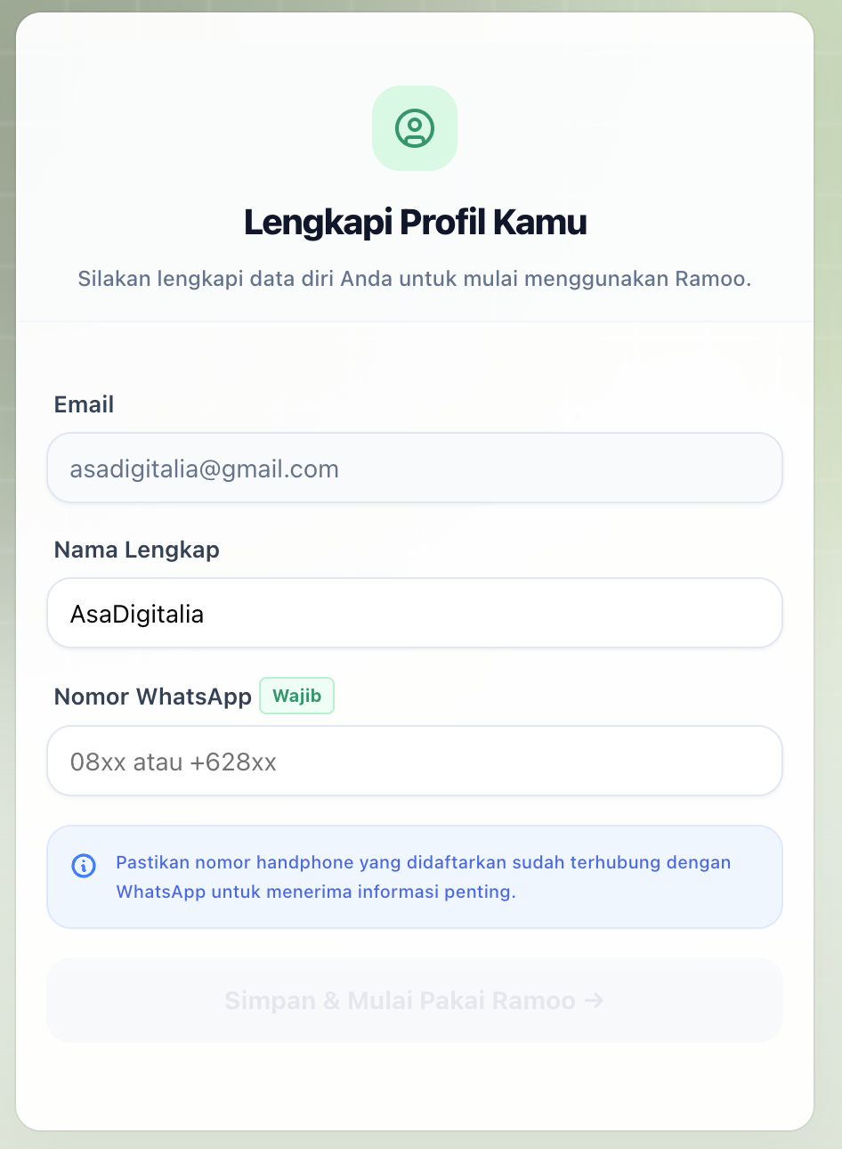 Lengkapi data profil singkat kamu agar sistem dapat mengenali identitas pemilik akun dengan benar.