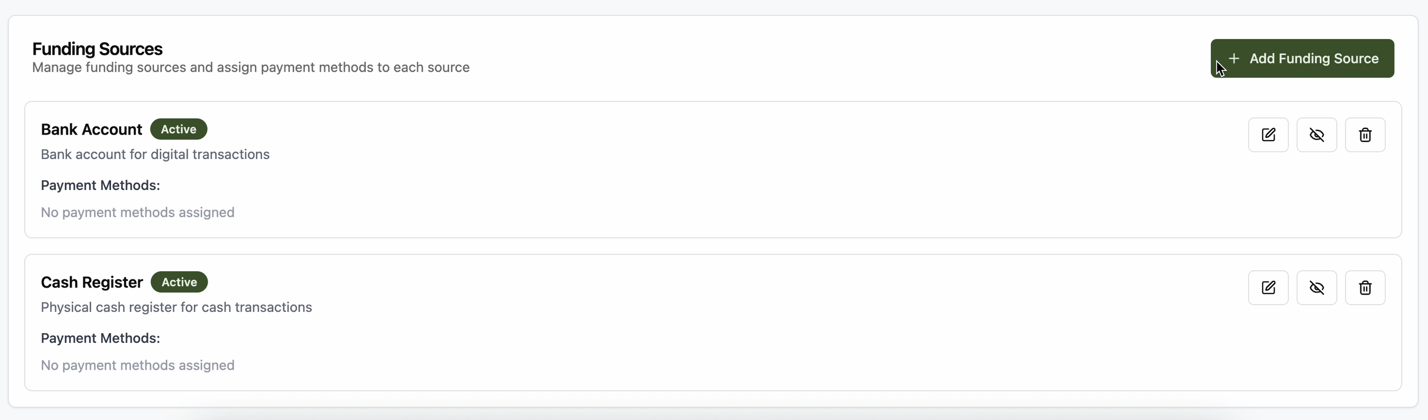 Klik tombol + Add Funding Source.